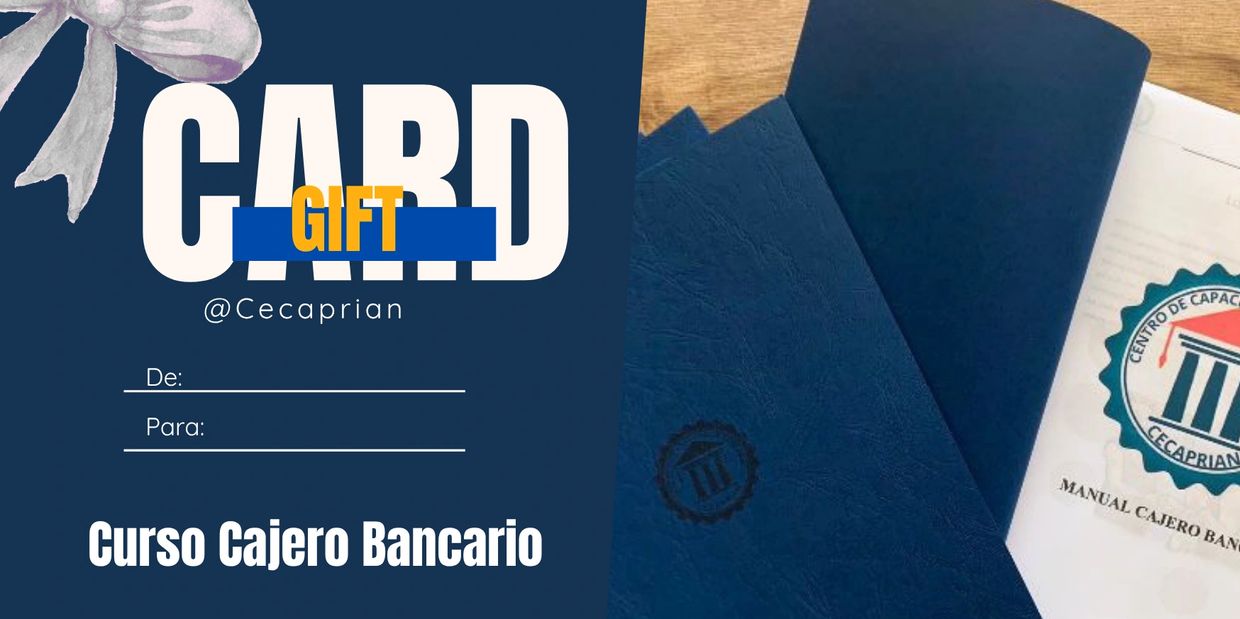 Te presentamos la nueva GIFTCARD CECAPRIAN, la que está orientada a un familiar, amigo, conocido o a quien tú quieras con nuestra frase "REGALA UN CURSO DE CAJERO BANCARIO".